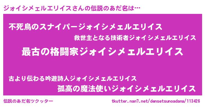 | 意味不明あだ名 | 『自称ジォイシメェルエリイス』 |