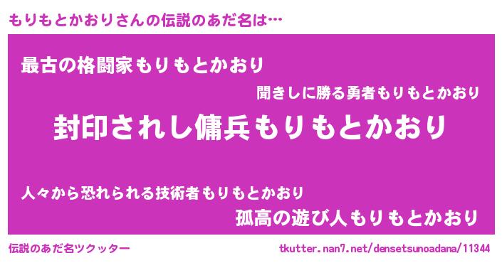 | 男性向けラノベタイトル風あだ名 | 『この素晴らしい世界にもりもとかおりを!』 |