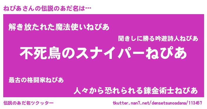 | ヒーロー風カッコイイあだ名 | 『スーパーネピア』『銀牙騎士ネピ』 |
