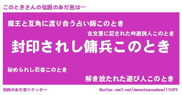 | 意味不明あだ名 | 『ペロリンこのとき』『自称このとき』 |