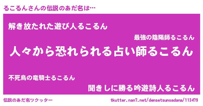 | 男性向けラノベタイトル風あだ名 | 『おまえをオタクにしてやるから、俺をるこるんにしてくれ! 』 |