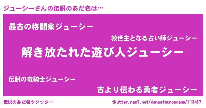 | ヒーロー風カッコイイあだ名 | 『サイバー戦士ジューシー』 |