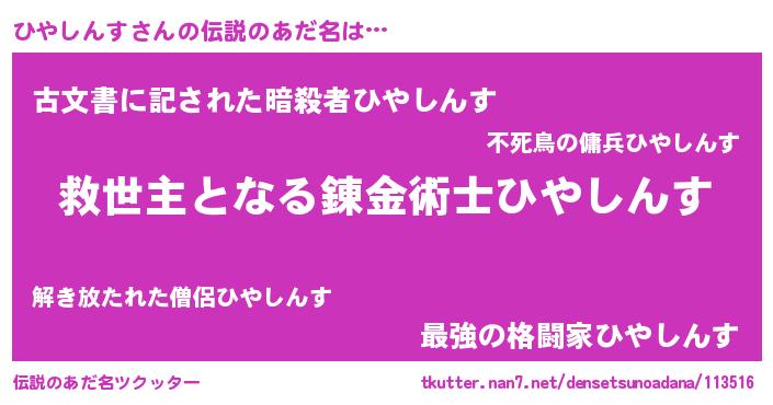 | ヒーロー風カッコイイあだ名 | 『究極戦士ヒヤシンス』『仮面ヒヤダー』 |