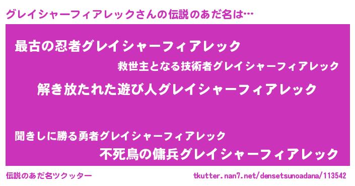 | 欧米人風あだ名 | 『ウサイングレイシャーフィアレック』 |