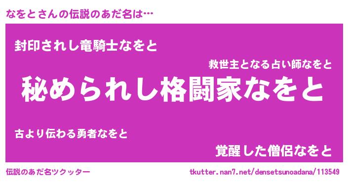 | 女子向けラノベタイトル風あだ名 | 『なをとの雑貨屋さん』『闇のなをと』 |