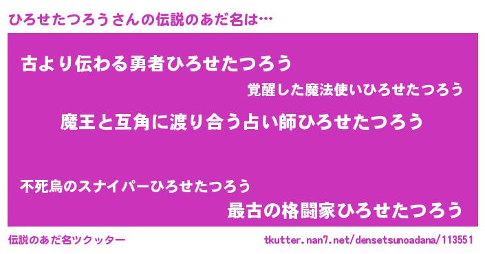 | ヒーロー風カッコイイあだ名 | 『ウルトラ戦士ヒロセタツロウ』 |