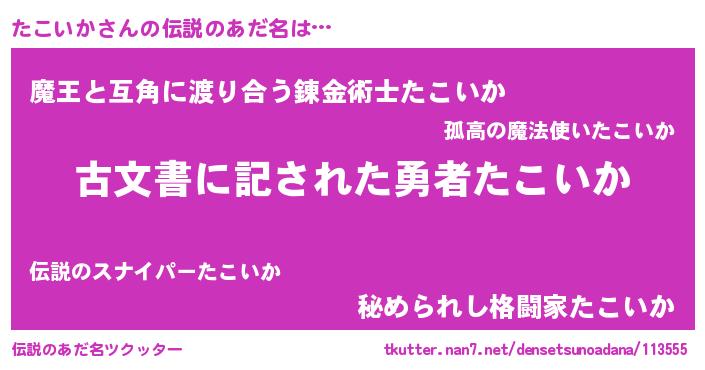 | 意味不明あだ名 | 『自称たこいか』『永久保存たこいか』 |