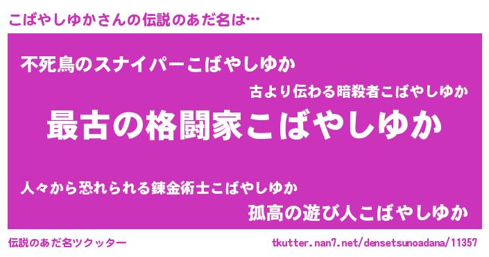 | 意味不明あだ名 | 『住所不定無職こばやしゆか(11歳)』 |