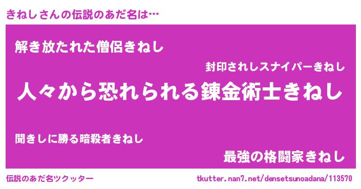 | ヒーロー風カッコイイあだ名 | 『正義の使者きねし』『幻影騎士キネ』 |