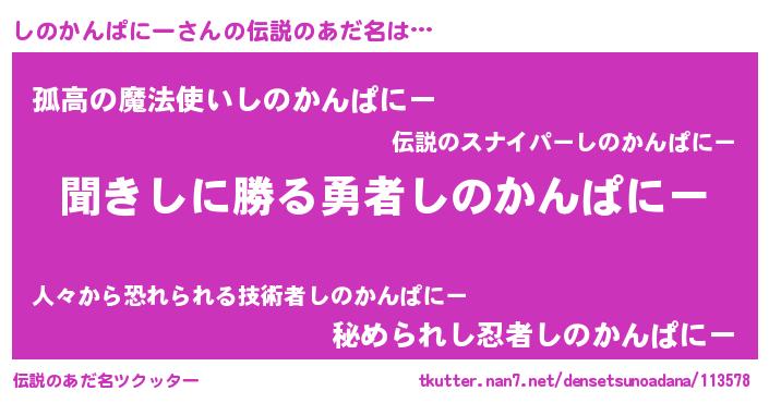 | ヒーロー風カッコイイあだ名 | 『ネオシノカンパニー』『魔戒騎士シノ』 |
