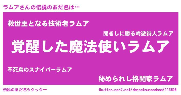 | 意味不明あだ名 | 『自称ラムア』『とにかく怪しいラムア』 |