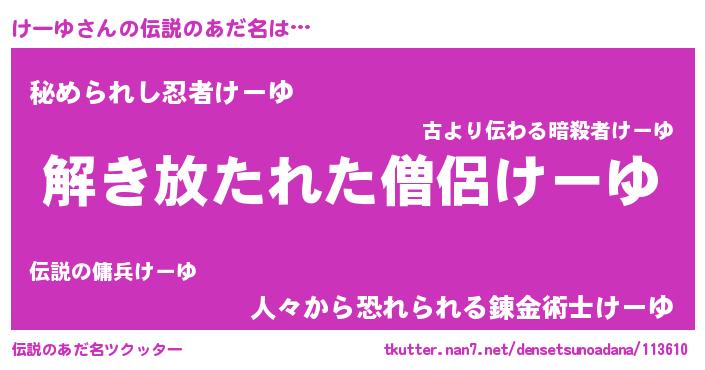 | 意味不明あだ名 | 『住所不定無職けーゆ(50歳)』 |