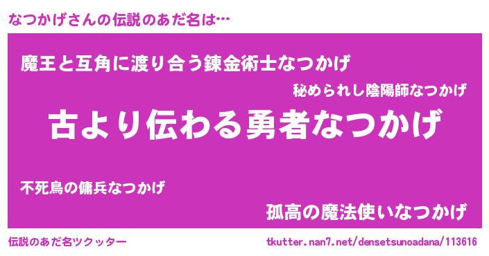 | 意味不明あだ名 | 『永久保存なつかげ』『自称なつかげ』 |