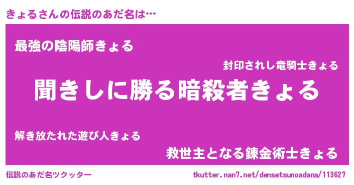 | ヒーロー風カッコイイあだ名 | 『仮面キョダー』『ネオキョル』 |