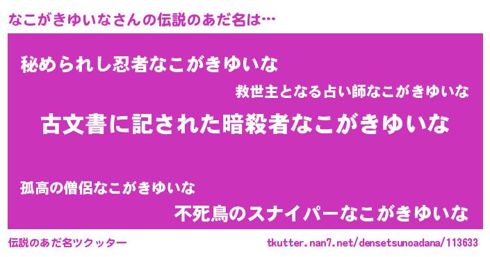 | 意味不明あだ名 | 『永久保存なこがきゆいな』 |