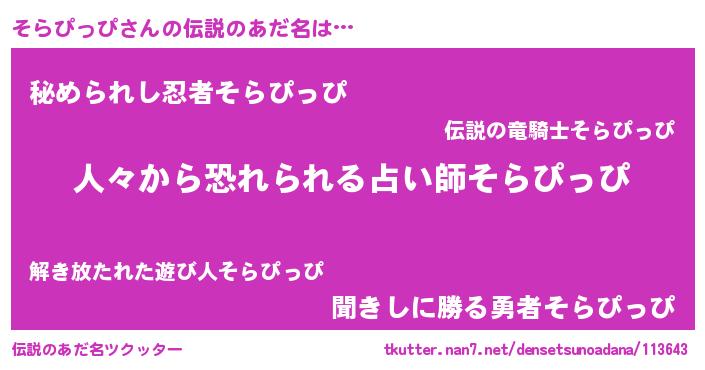 | 意味不明あだ名 | 『住所不定無職そらぴっぴ(68歳)』 |