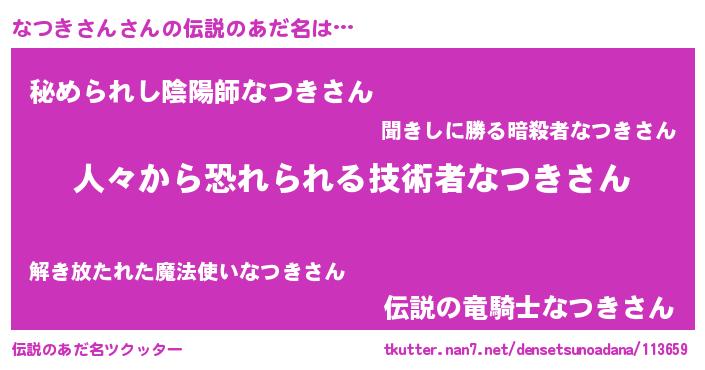 | 欧米人風あだ名 | 『なつきさん・ステッグマイヤー』 |