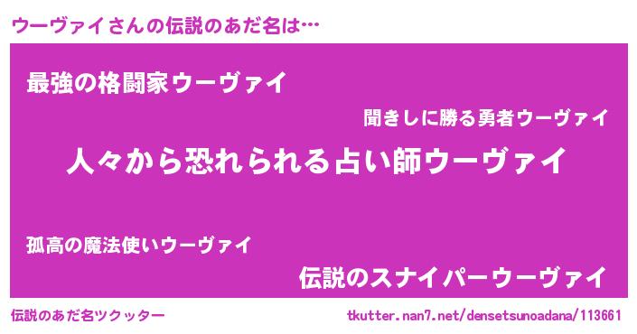 | ポケモン風あだ名 | 『ウーーイ』『ウックウザ』 |