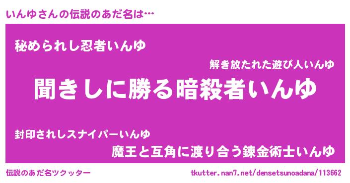 | ヒーロー風カッコイイあだ名 | 『ネオインユ』『ウルトラいんゆマン』 |