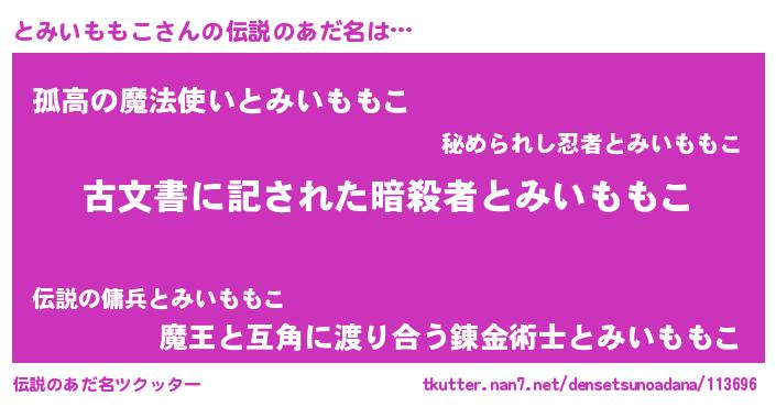 | 意味不明あだ名 | 『住所不定無職とみいももこ(53歳)』 |