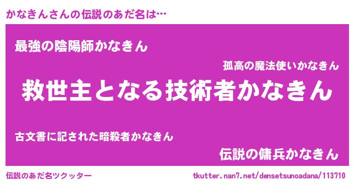 | 男性向けラノベタイトル風あだ名 | 『ノーゲーム・ノーカナキン』 |