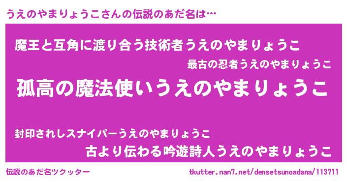 | 肩書あだ名 | 『うえのやまりょうこ大佐』 |