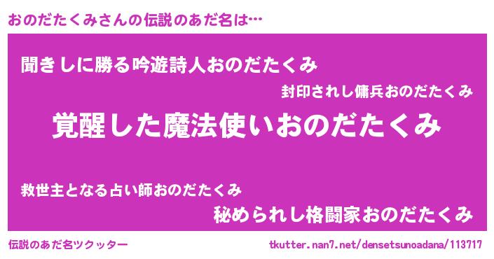| 欧米人風あだ名 | 『おのだたくみ・ステッグマイヤー』 |