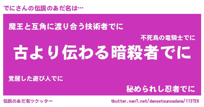 | ヒーロー風カッコイイあだ名 | 『ネオデニ』『天空の使者でに』 |