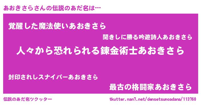 | 意味不明あだ名 | 『住所不定無職あおきさら(95歳)』 |