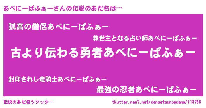 | ヘコむあだ名 | 『あべにーぱふぁー(震え声)』『あべっぺ』 |