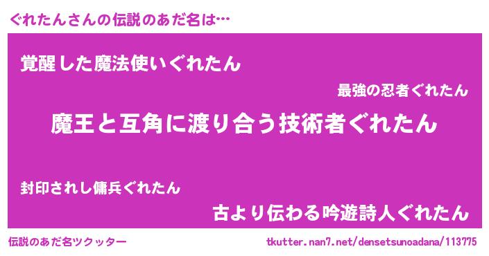 | ヒーロー風カッコイイあだ名 | 『慈愛の使者ぐれたん』『炎刃騎士グレ』 |
