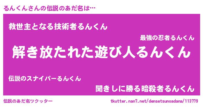 | 男性向けラノベタイトル風あだ名 | 『この素晴らしい世界にるんくんを!』 |