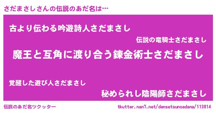 | ヒーロー風カッコイイあだ名 | 『最強戦士サダマサシ』『仮面サダダー』 |