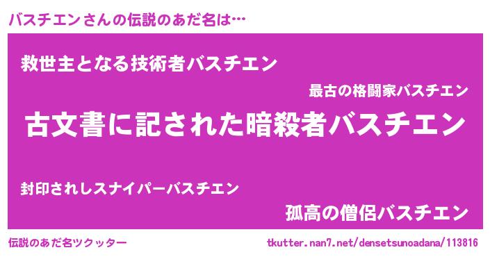 | ヒーロー風カッコイイあだ名 | 『究極戦士バスチエン』『ネオバスチエン』 |