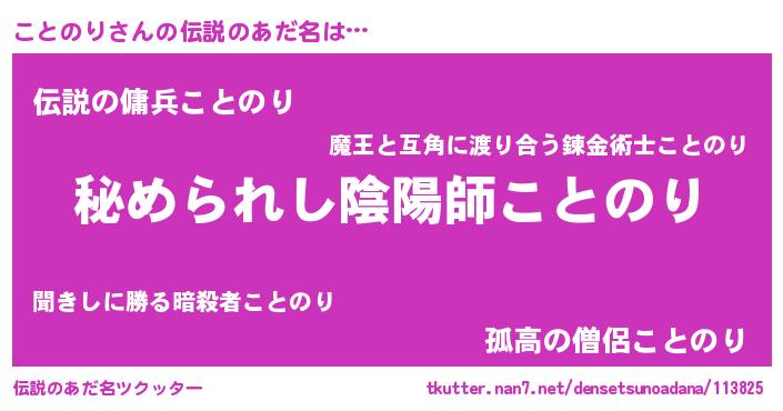 | ヒーロー風カッコイイあだ名 | 『ウルトラことのりマン』『天弓騎士コト』 |