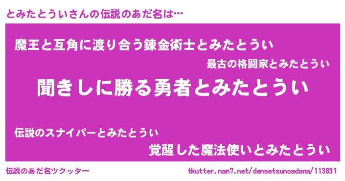 | 意味不明あだ名 | 『永久保存とみたとうい』 |