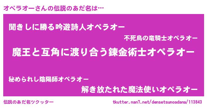 | ことわざ | 一石二鳥『一石二オペラオー』 |