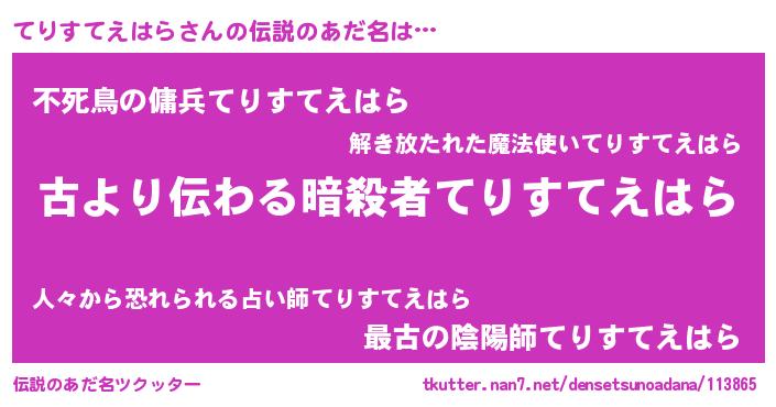 | 男性向けラノベタイトル風あだ名 | 『てりすてえはらという概念が存在しない退屈な世界 』 |