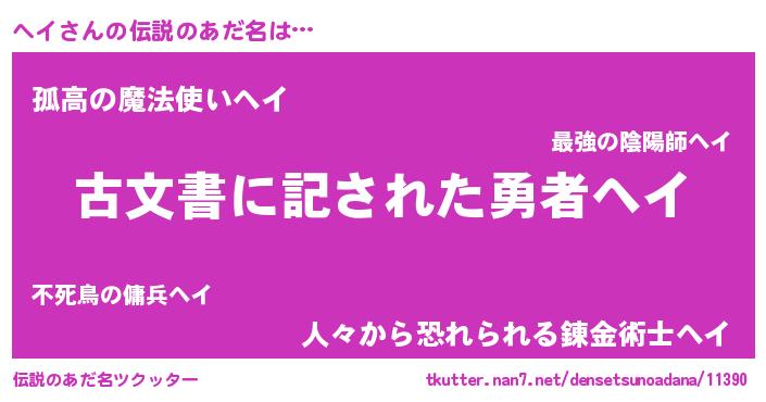 | ヒーロー風カッコイイあだ名 | 『ネオヘイ』『魔戒騎士ヘイ』 |