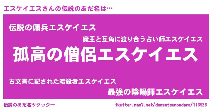 | ヒーロー風カッコイイあだ名 | 『暗黒騎士エス』『仮面エスダー』 |