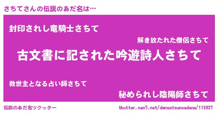 | ヘコむあだ名 | 『さちて(小並感)』『さちにー』 |