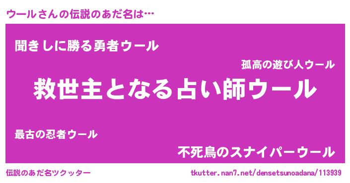 | ヘコむあだ名 | 『ウール(笑)』『ウーもー』『つくし』 |