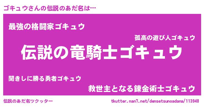 | 男性向けラノベタイトル風あだ名 | 『ゴキュウの憂鬱』『魔弾の王とゴキュウ』 |