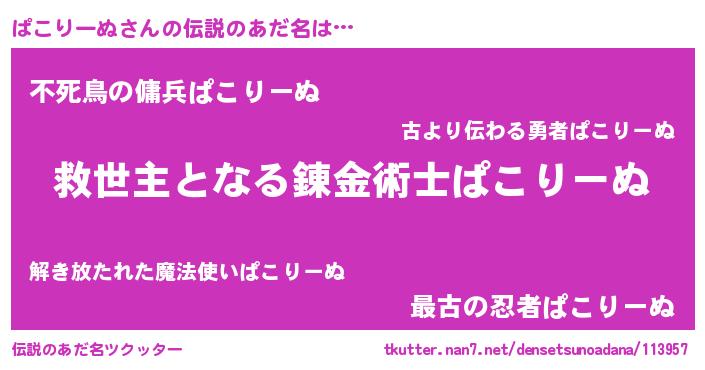 | ヒーロー風カッコイイあだ名 | 『天空の使者ぱこりーぬ』『仮面パコダー』 |