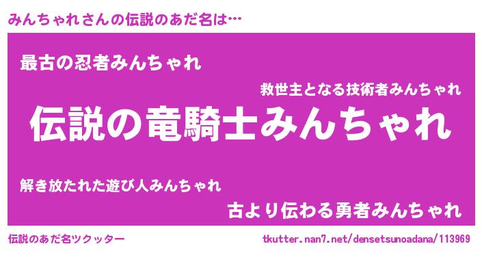 | ヒーロー風カッコイイあだ名 | 『スーパーミンチャレ』『ネオミンチャレ』 |