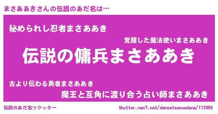 | ファンタジー風あだ名 | 『マサフェル』『エターナルマサアアキー』 |