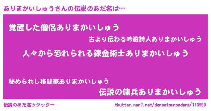 | ヒーロー風カッコイイあだ名 | 『正義の使者ありまかいしゅう』 |