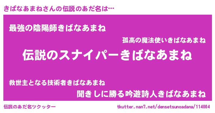| 男性向けラノベタイトル風あだ名 | 『きばなあまねの憂鬱』 |