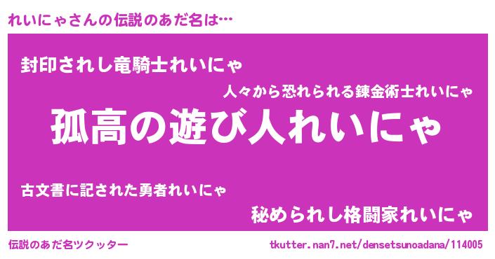 | 意味不明あだ名 | 『とにかく怪しいれいにゃ』 |