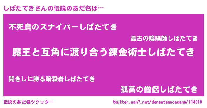 | 男性向けラノベタイトル風あだ名 | 『転生したらしばたてきだった件』 |